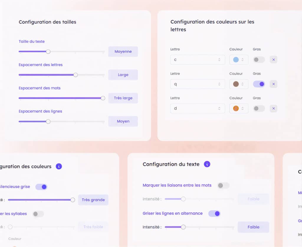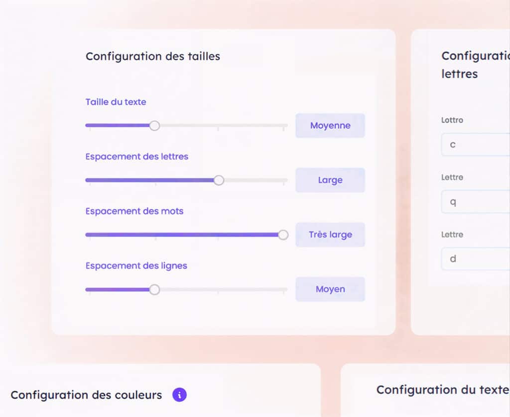 Plus d’une dizaine de critères analysés par l’IA pour transformer chaque texte sur mesure. Police, espacements, couleurs : tout s’adapte automatiquement.