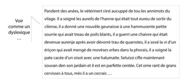 Eh bien, c’est un peu ce que vit un dyslexique : à chaque fois qu’il voit un mot, même s’il l’a déjà lu, son orthographe lui paraît nouvelle à chaque fois.